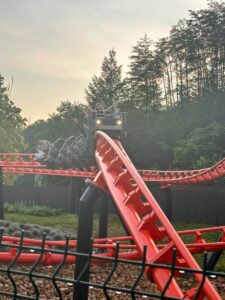 Continue around the curve from Tennessee Tornado and up on your right you’ll find the building for Blazing Fury. This is the oldest “roller coaster” in the park and I’ve been riding it since I was a kid! It has a 42″ height requirement. It is an indoor coaster that actually goes very slow and takes you through scenes of an old town that is catching fire. It’s like a lost Disney attraction that hasn’t been updated in a long time. It’s strange and wonderful. There are 3 small drops which make this one a “roller coaster,” but not really.