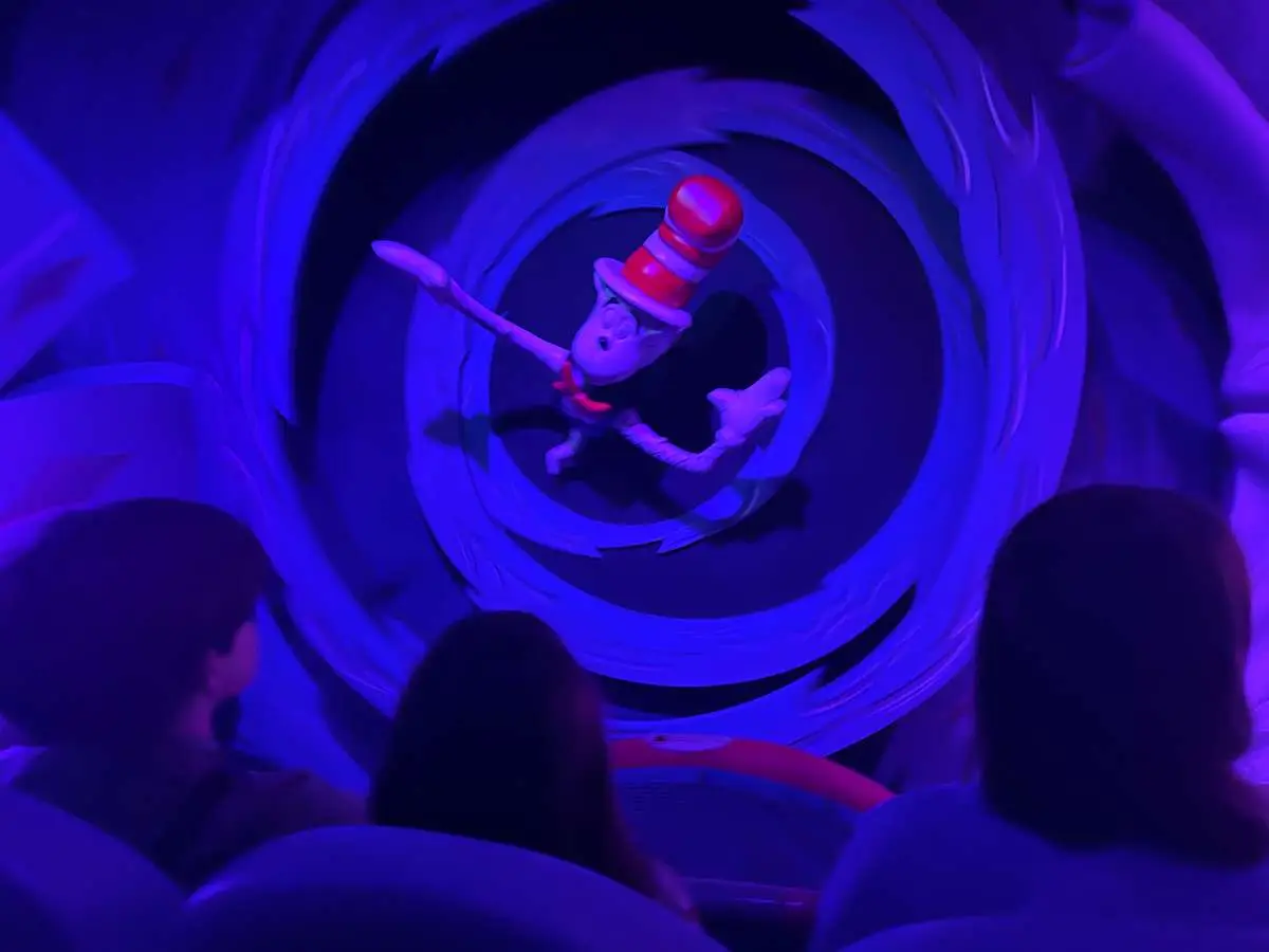 Description: A slow-moving train ride around an elevated track around Seuss Landing. There are two different tracks and both give great views the park and one goes through the Cirucus McGurkus Cafe. A narrator tells a Seuss story as you go around and there are a few animatronic characters to see.