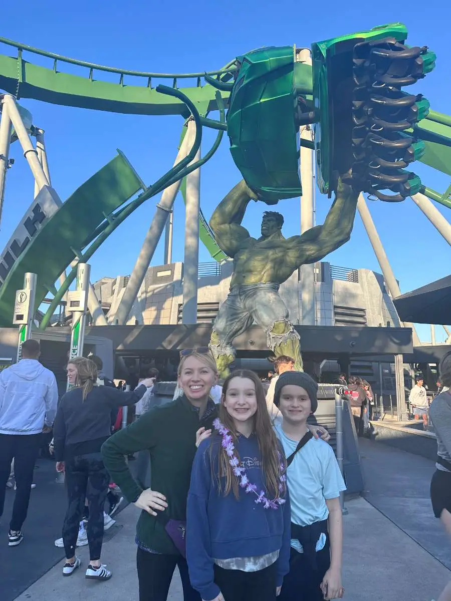 - 54″ – The Incredible Hulk Coaster (check in with someone at the start of the queue to ask. There’s no rider swap room on this ride. Littles can ride the Storm Force spinning ride next to it while they wait)