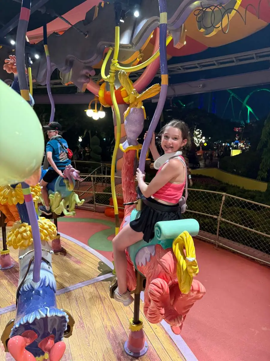 Height Requirement: 48″ (Check your kid’s height before they get in line! I’ve seen kids wait hours for this attraction and be turned away in tears because they aren’t quite tall enough. “Close to 48in” will not count! They are required to be strict and will not make exceptions!