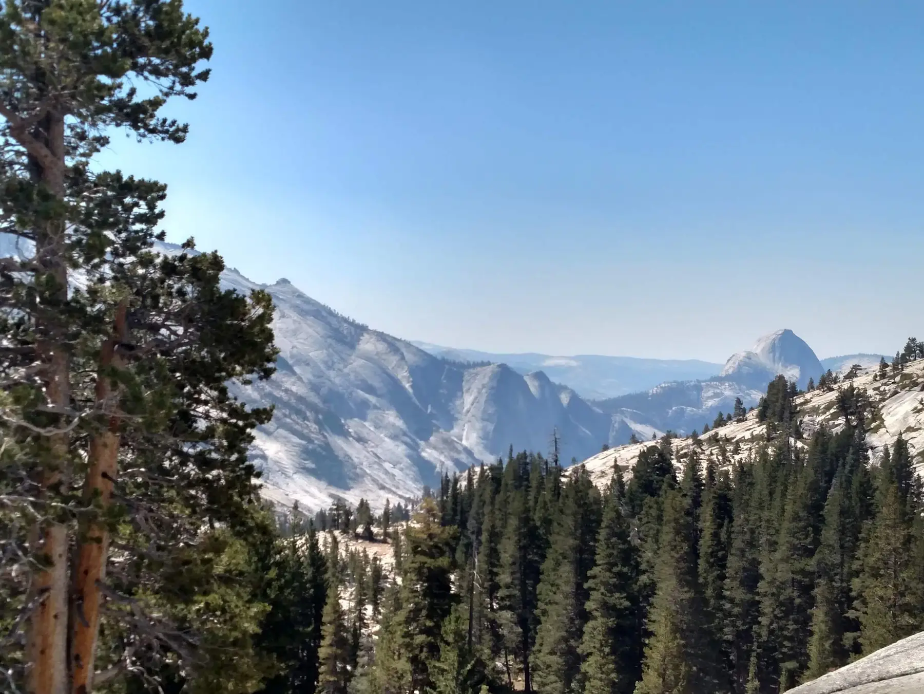 While on Tioga Road, stop at Olmsted Point and walk the short path to get a great view of Half Dome from the North side.